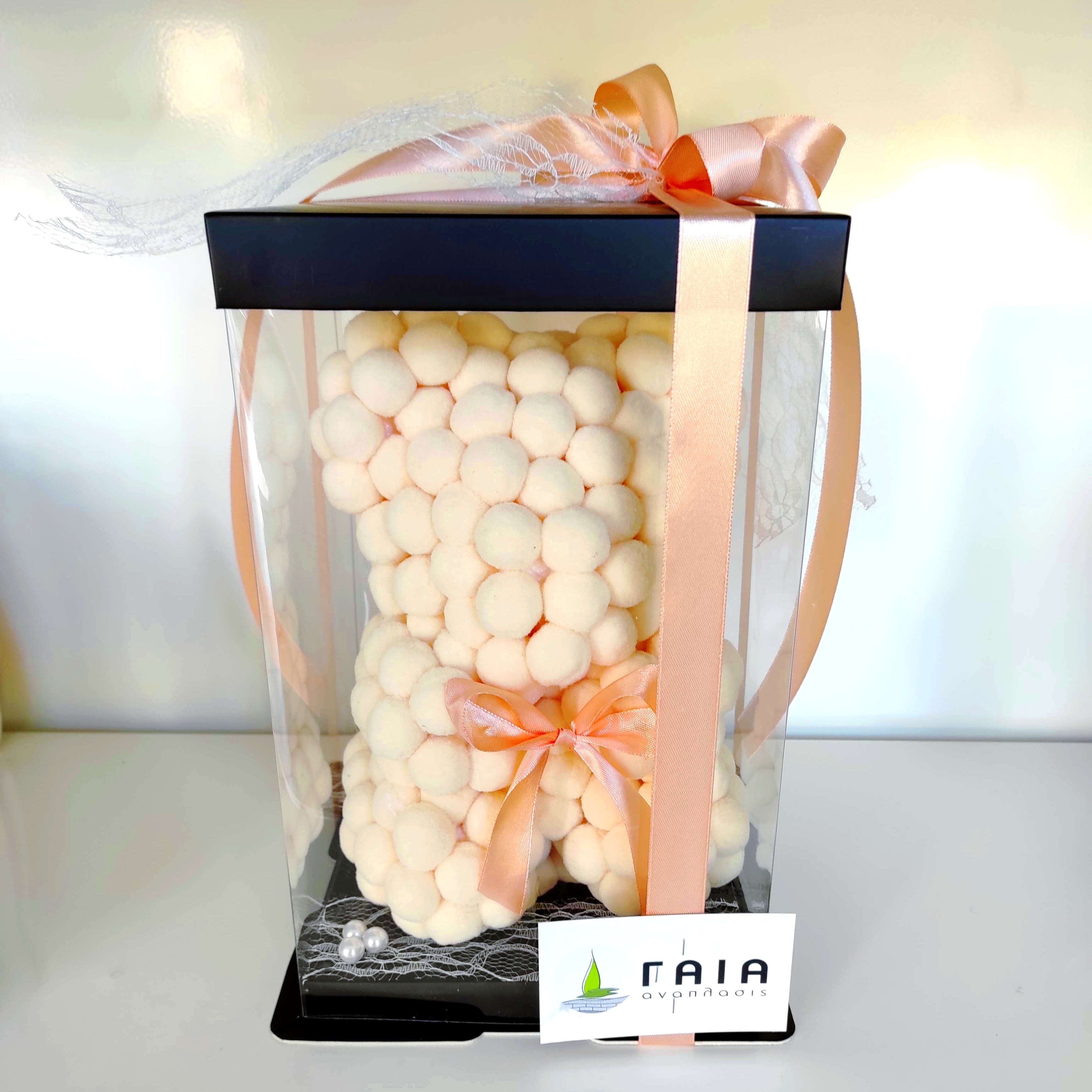 Aρκουδάκι από Pom-pom 25 cm σε ιβουάρ απόχρωση.