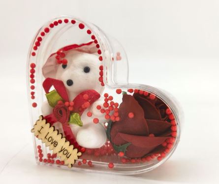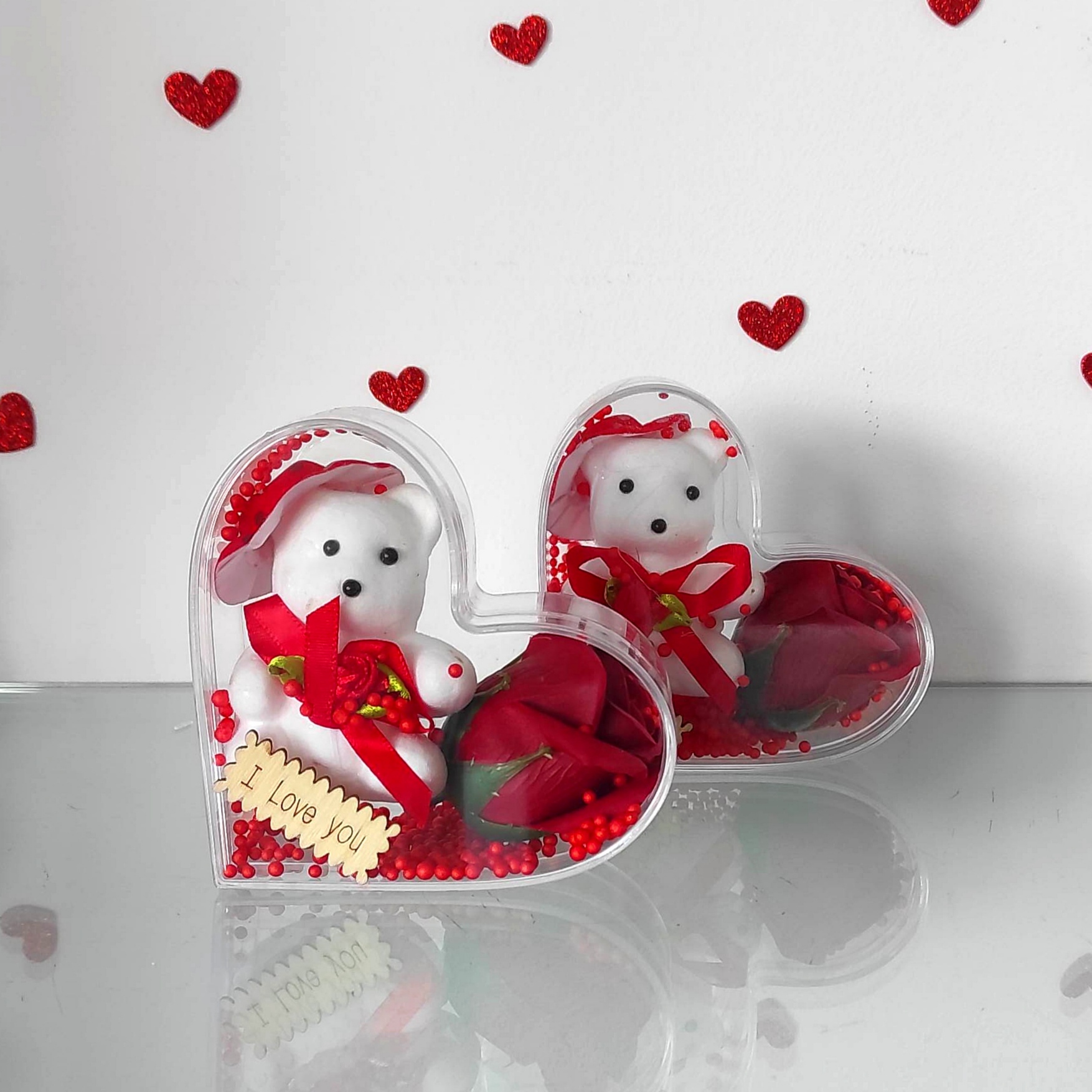 Κουτάκι σε σχήμα καρδιάς με τριαντάφυλλα σαπουνιού (soap roses) και αρκουδάκι