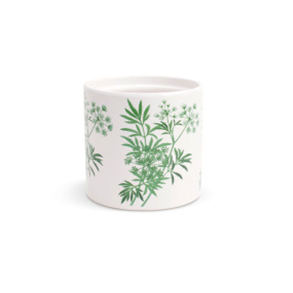 Κασπώ κεραμικό με σχέδιο από πράσινα φύλλα σε λευκό χρώμα.