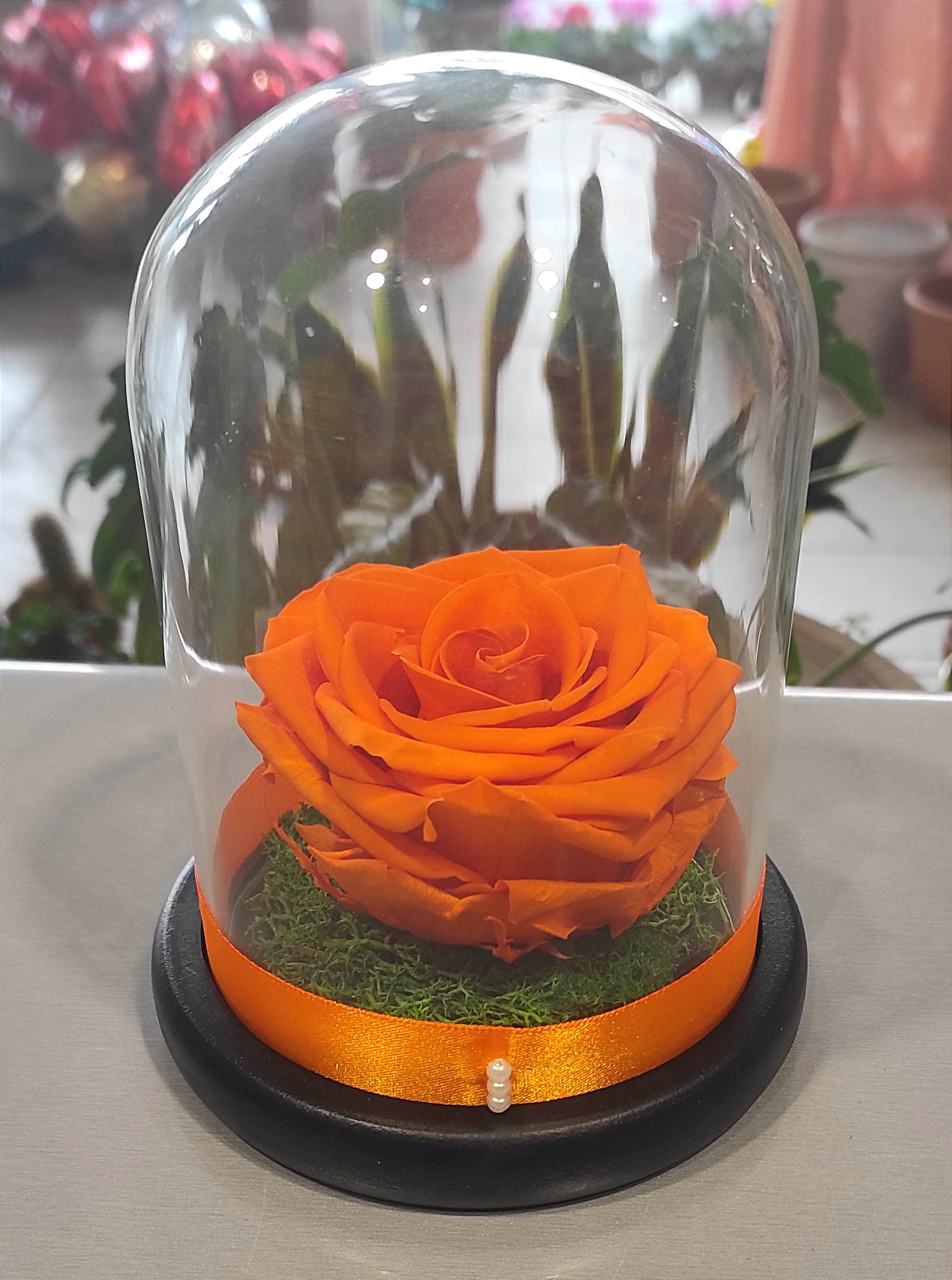 Πορτοκαλί Forever rose σε μεσαία γυάλινη καμπάνα