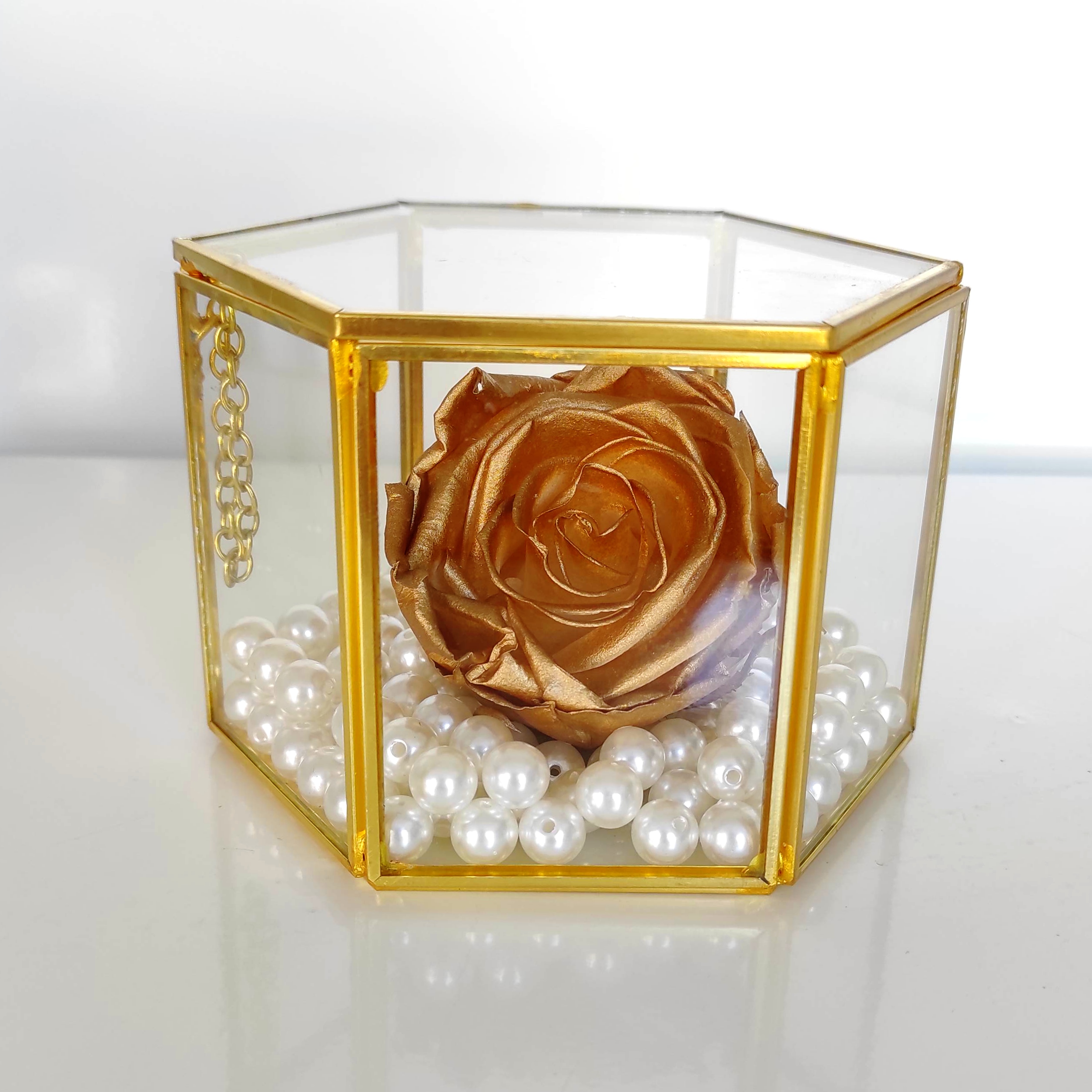 Χρυσό Forever rose σε γυάλινο κουτί με πέρλες