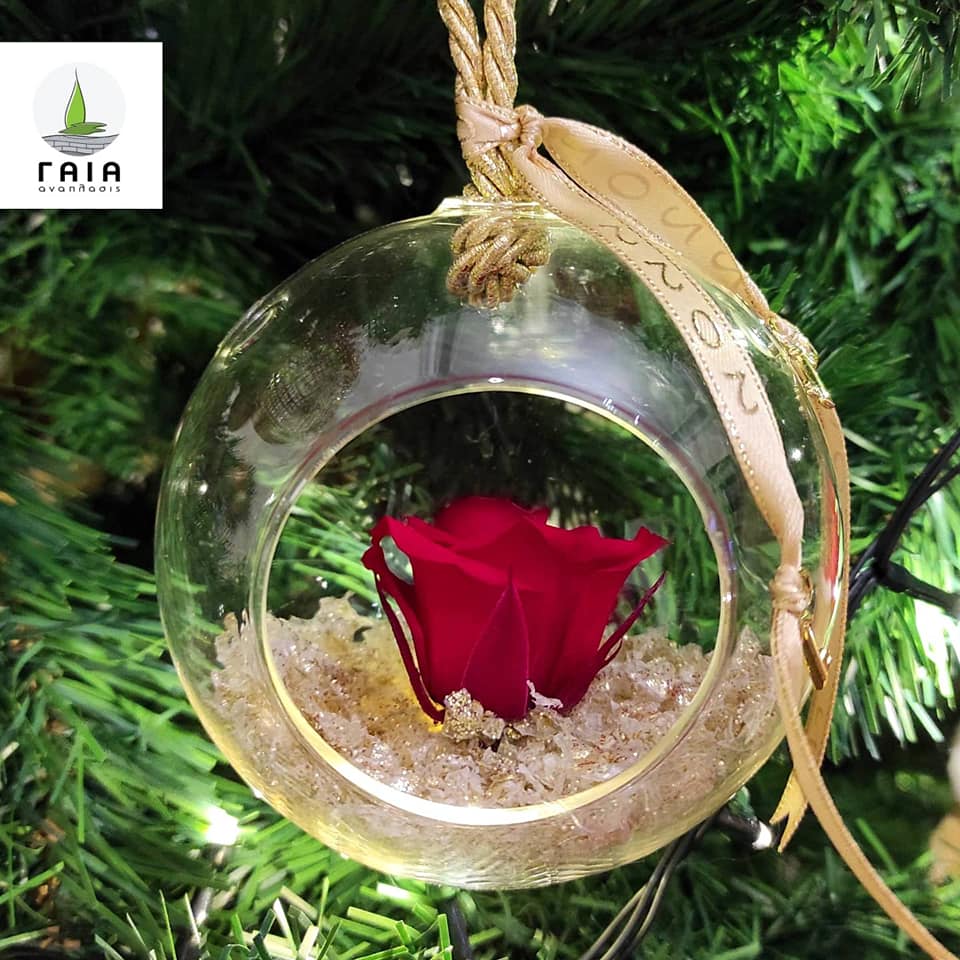 Χριστουγεννιάτικη γυάλινη μπάλα με άνοιγμα με κόκκινο forever rose!