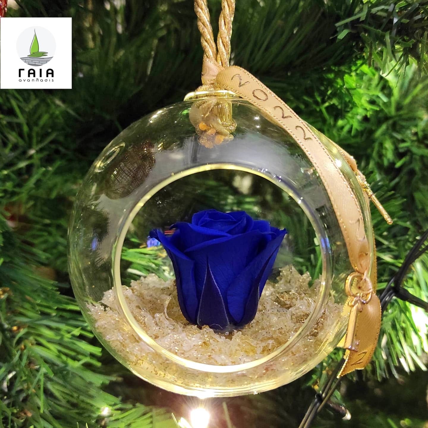 Χριστουγεννιάτικη γυάλινη μπάλα με άνοιγμα με μπλε forever rose!