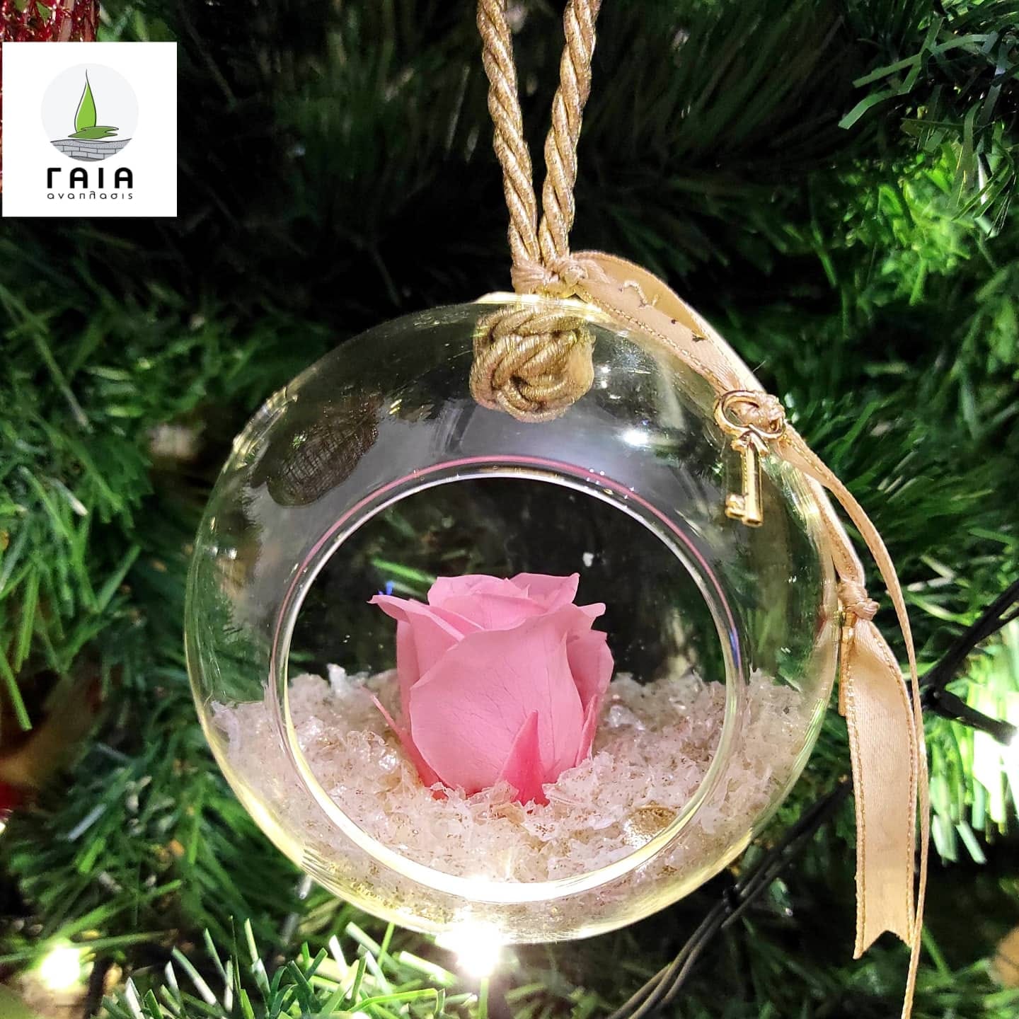 Χριστουγεννιάτικη γυάλινη μπάλα με άνοιγμα με ροζ forever rose!