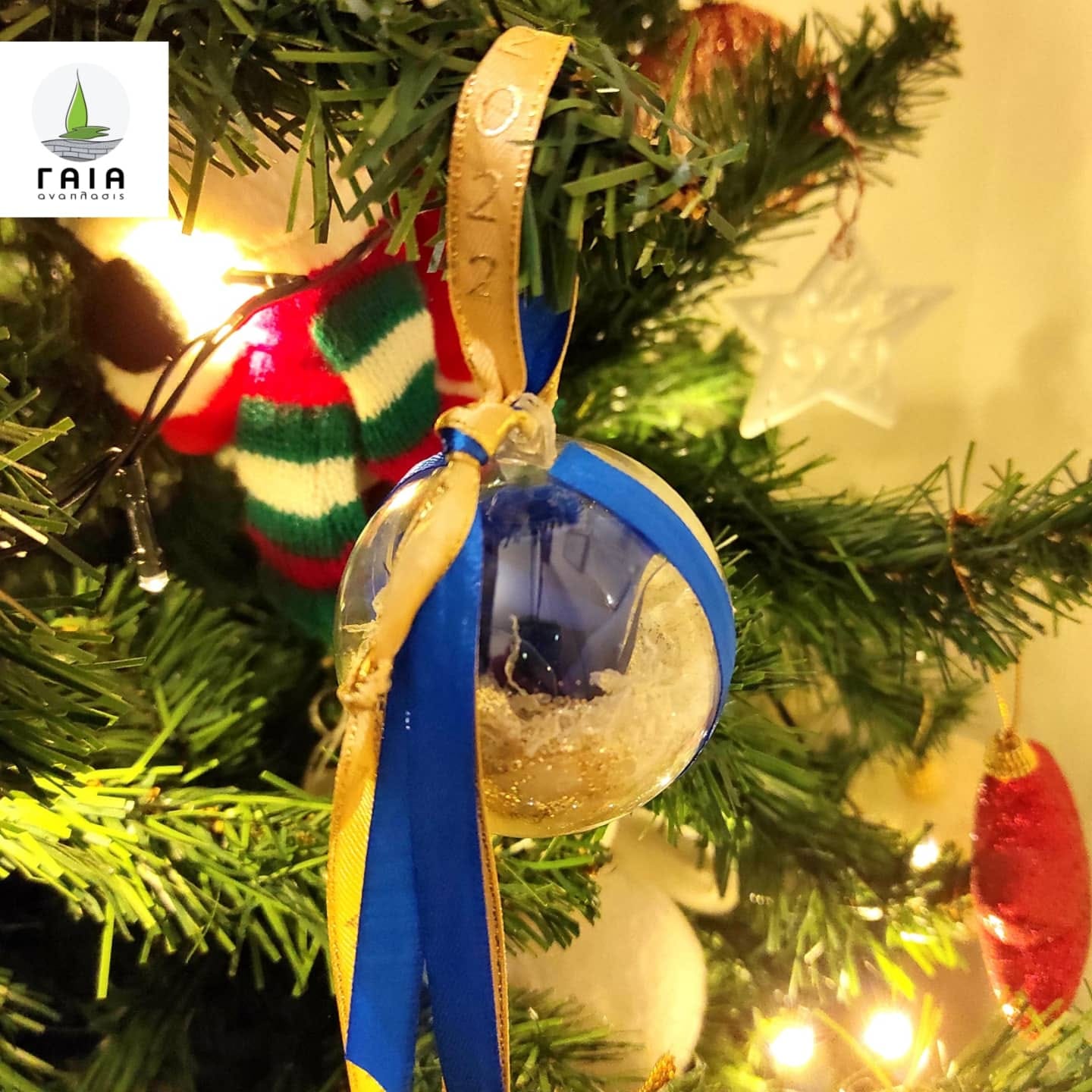 Χριστουγεννιάτικη πλαστική μπάλα με μπλε forever rose και χιόνι!