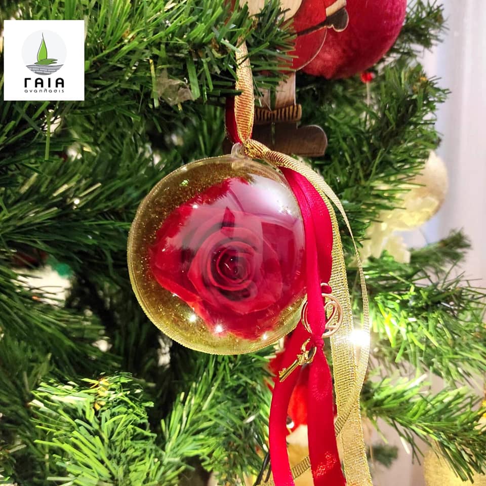 Χριστουγεννιάτικη πλαστική μπάλα με κόκκινο forever rose και χρυσόσκονη!