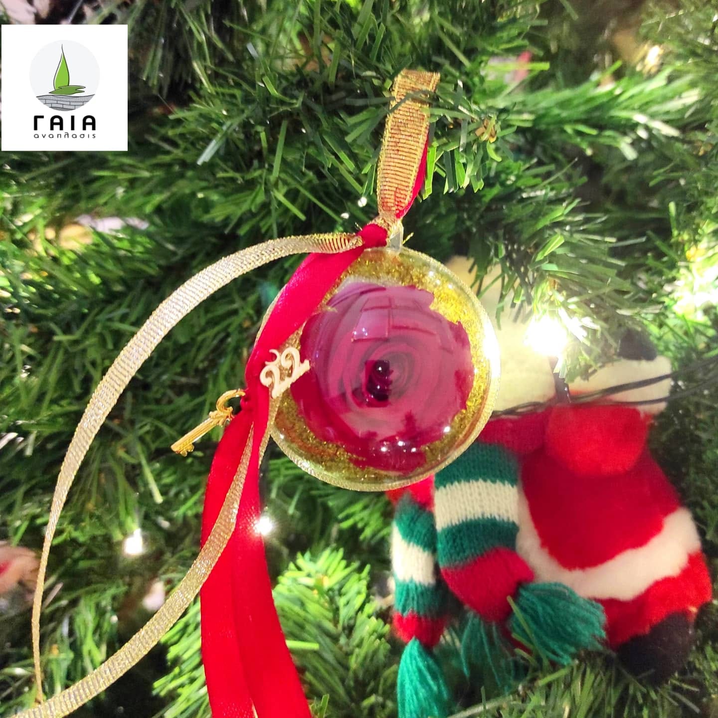 Χριστουγεννιάτικη μινι πλαστική μπάλα με κόκκινο forever rose και χρυσόσκονη!