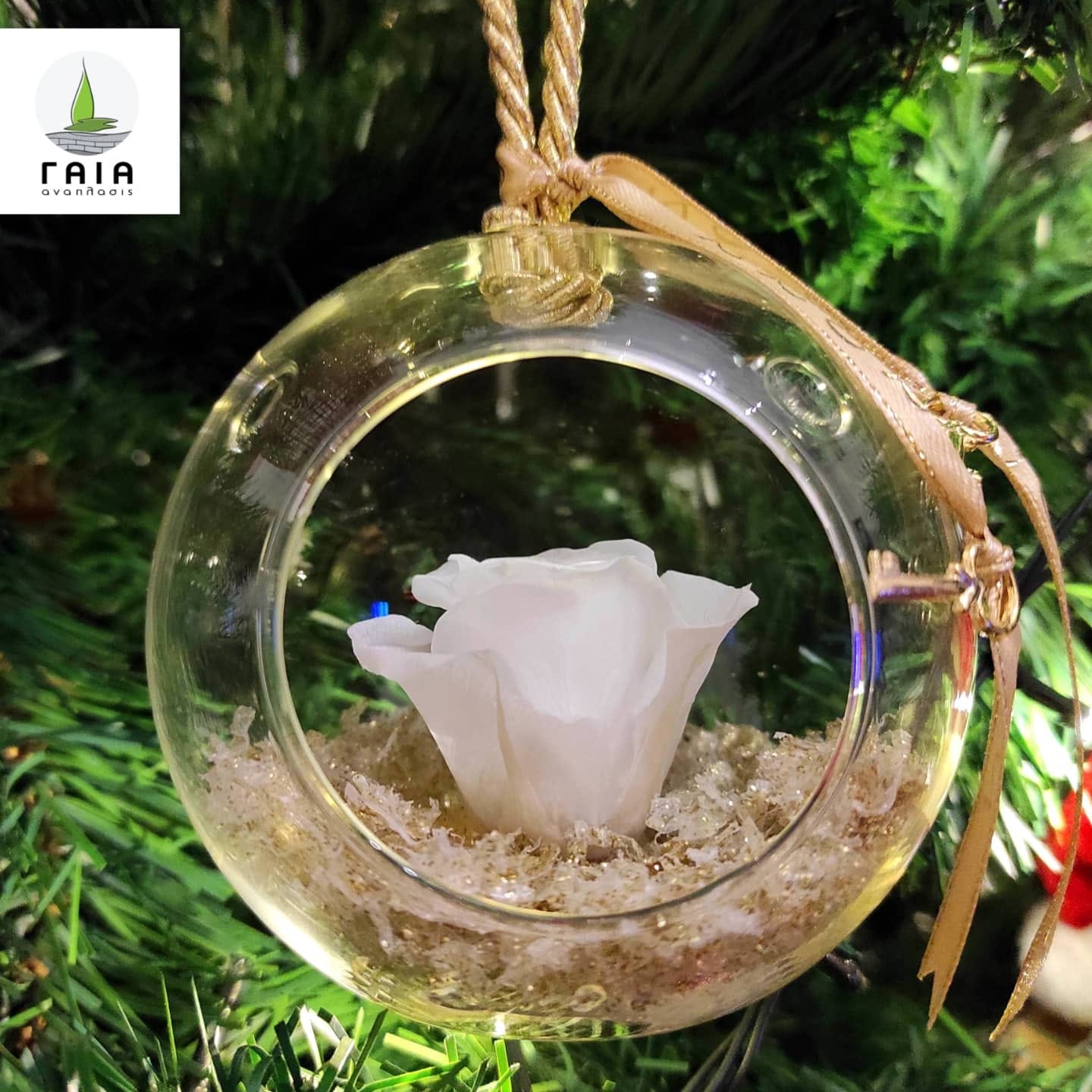 Χριστουγεννιάτικη γυάλινη μπάλα με άνοιγμα με λευκό forever rose!
