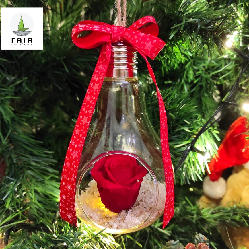 Χριστουγεννιάτικη γυάλινη λάμπα με κόκκινο forever rose!