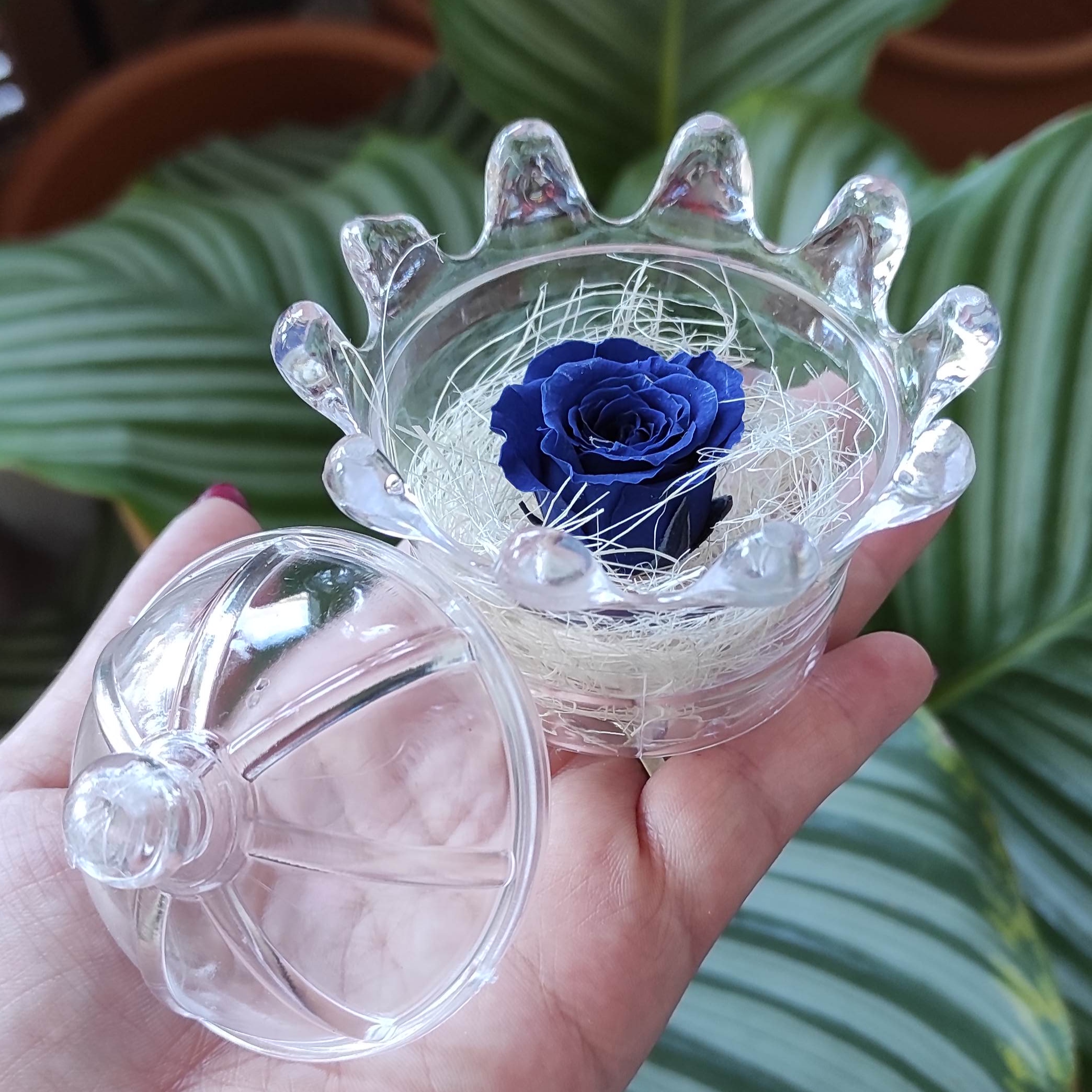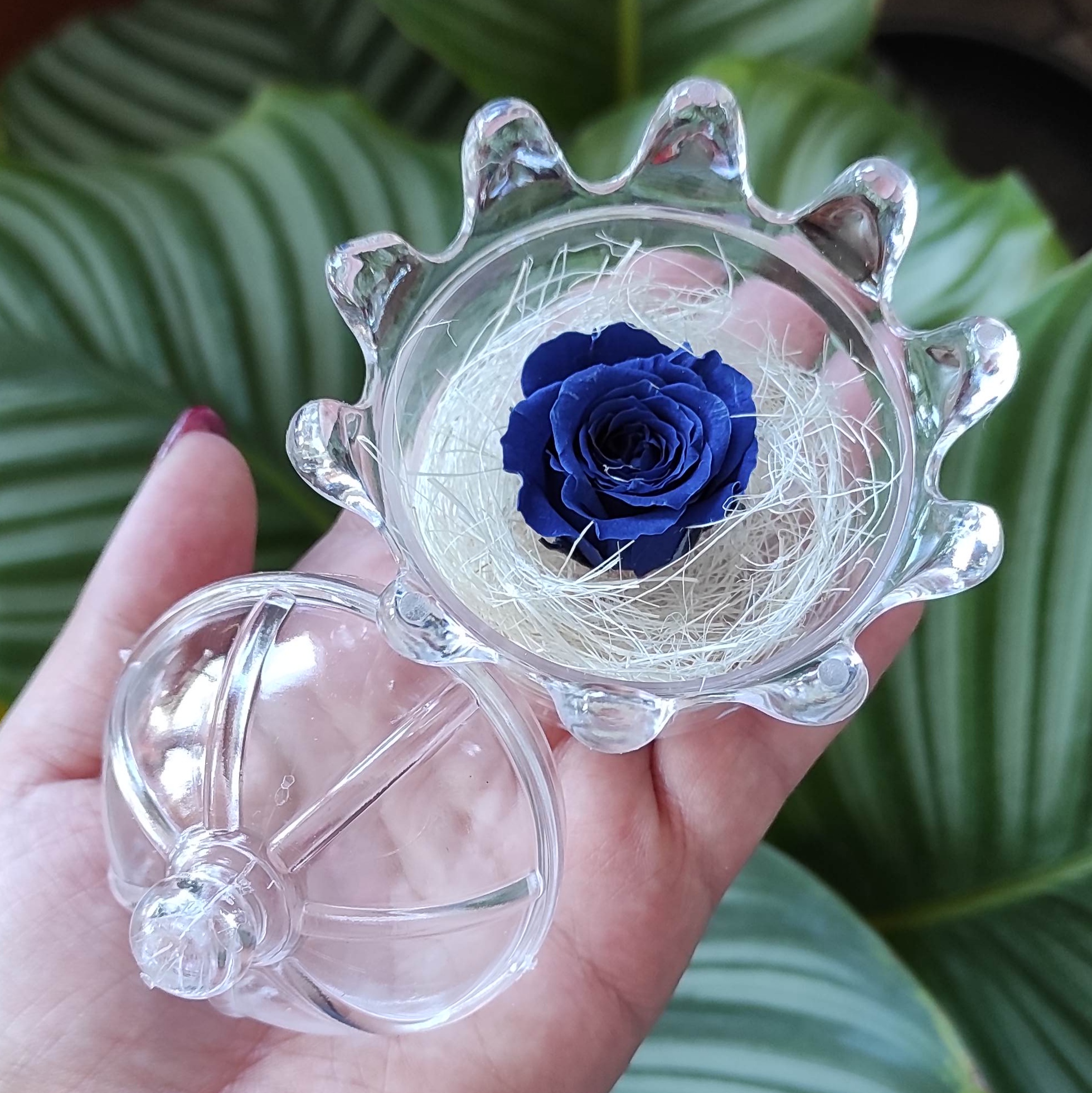 Mini μπλε forever rose σε πλαστική κορώνα.
