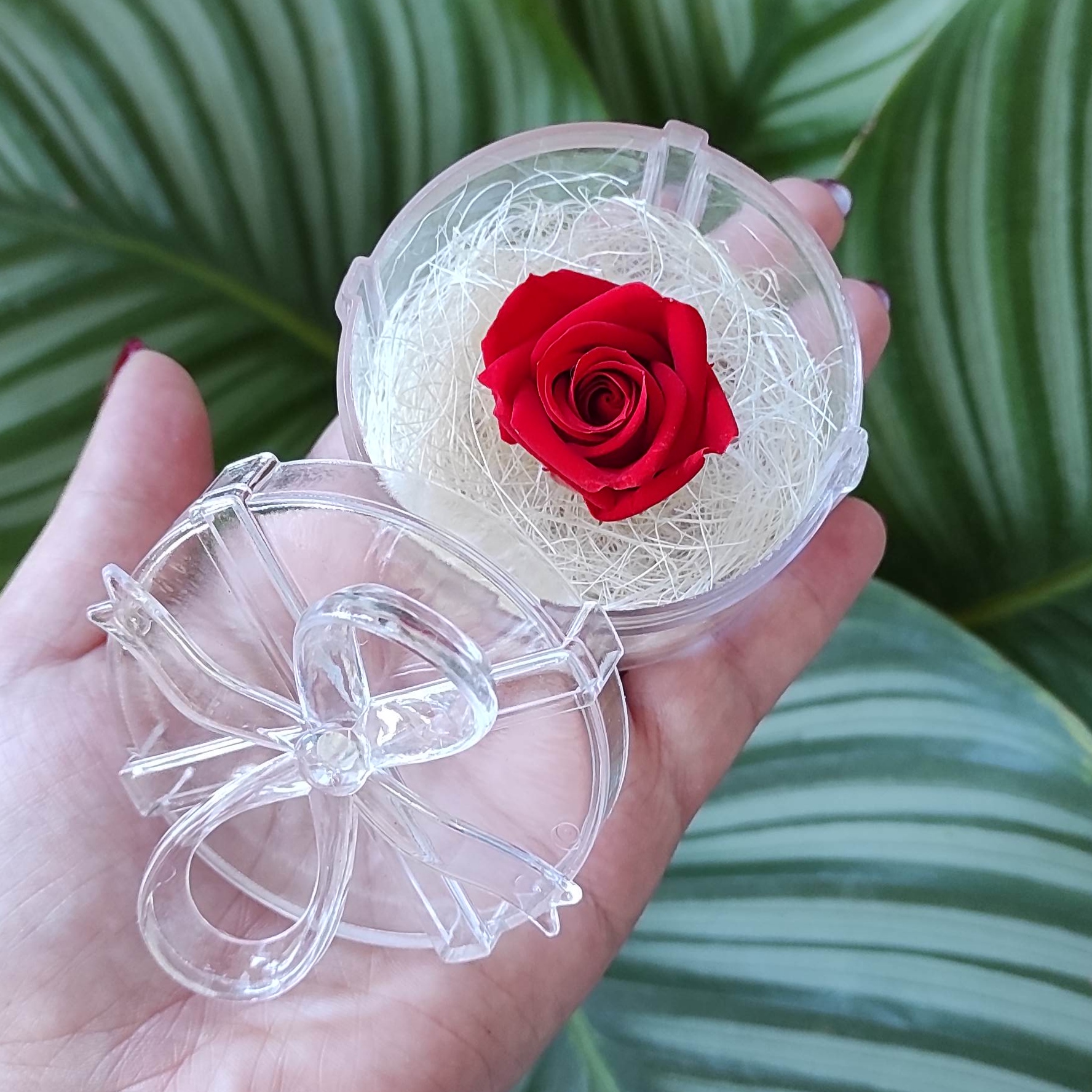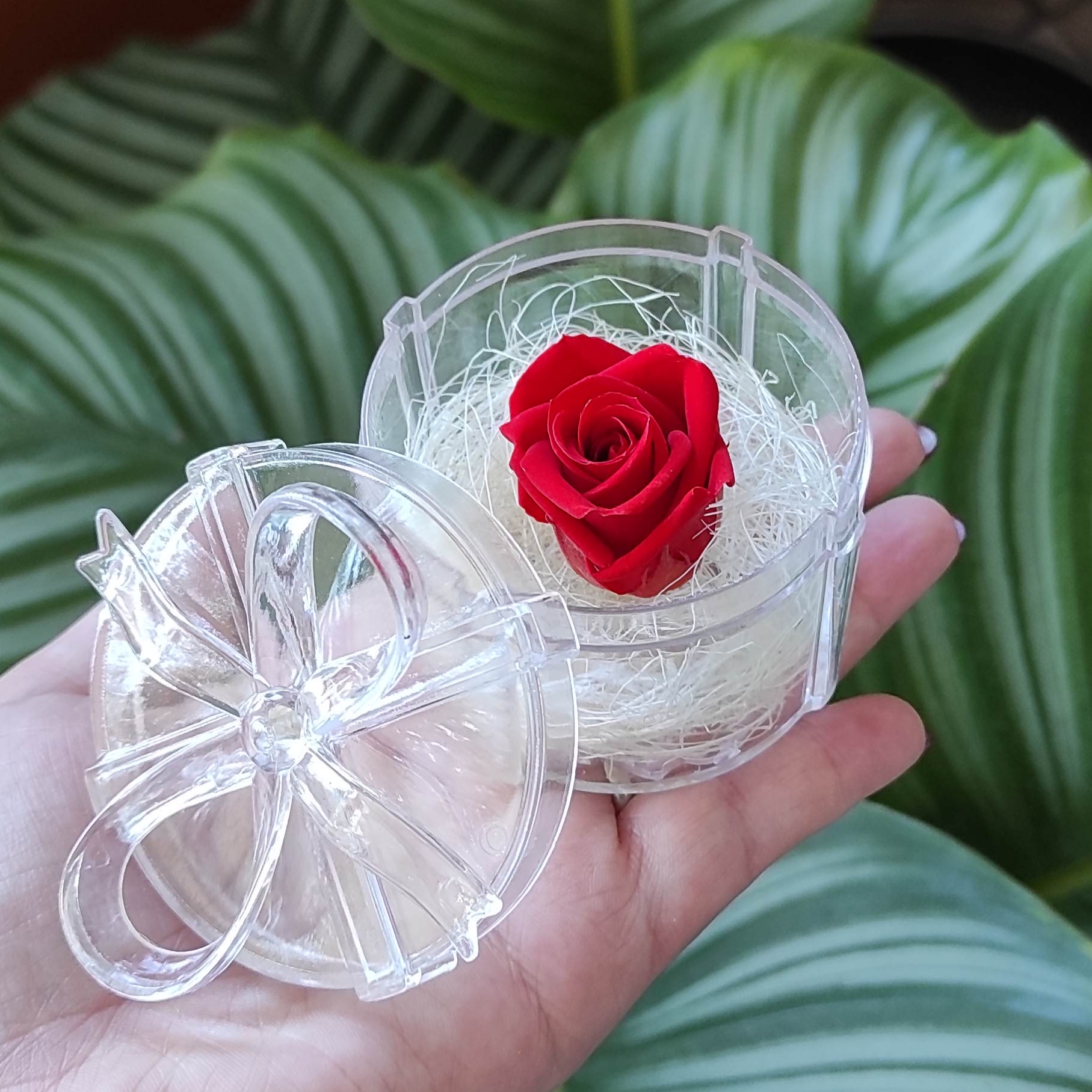 forever rose σε πλαστικό στρογγυλό κουτάκι με φιόγκο.