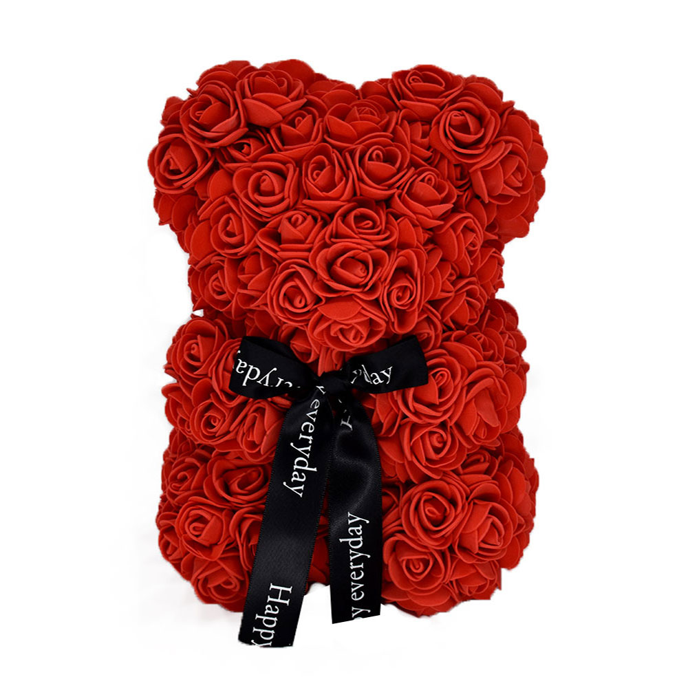 Αρκουδάκι από τεχνητά τριαντάφυλλα 25 cm σε κόκκινο χρώμα.