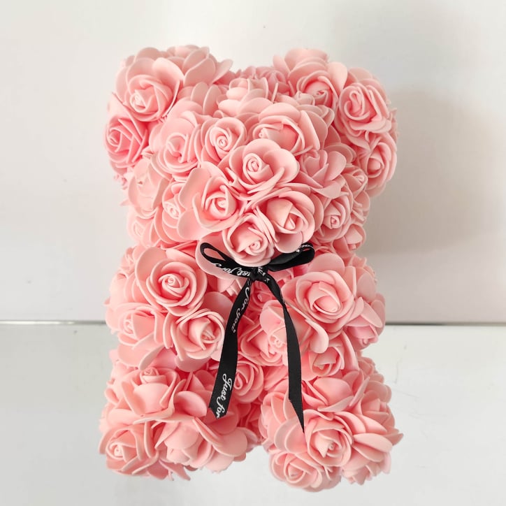 Αρκουδάκι από τεχνητά τριαντάφυλλα 25 cm σε σομόν χρώμα.
