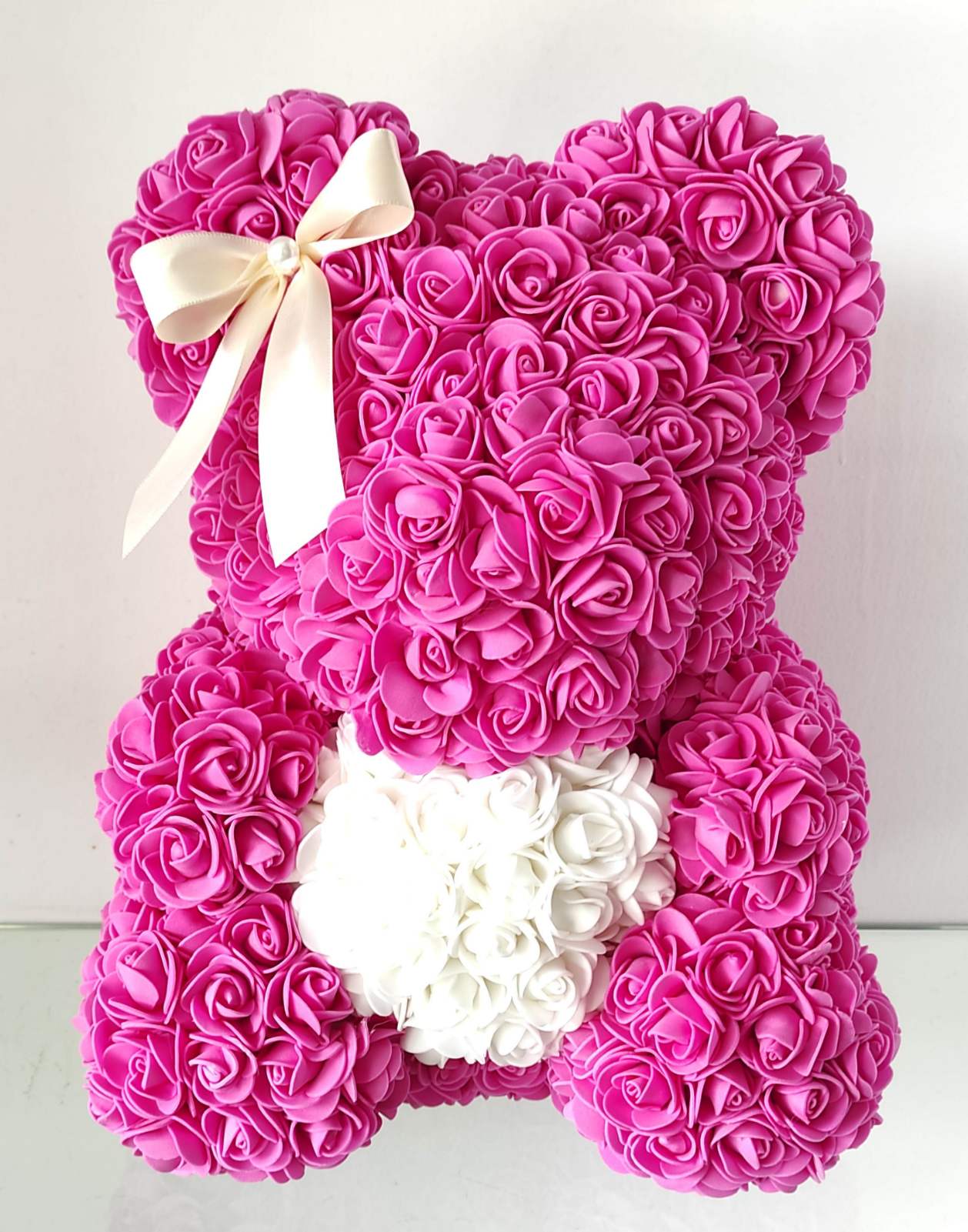 Αρκουδάκι από τεχνητά τριαντάφυλλα 40 cm σε ροζ χρώμα.